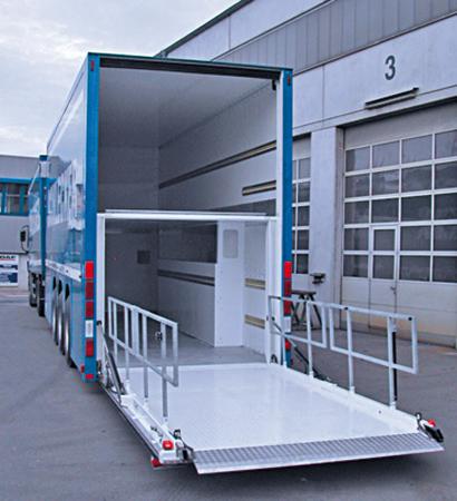 The principle of the "under-swing lift" in a new dimension: Bär Cargolift HydFalt as the first fully hydraulic folding retractable lift is not only comfortable, but also decisively faster when used frequently. HydFalt, with the world's first aluminium sliding mechanism, is completely pre-assembled and simply bolted to the vehicle frame.