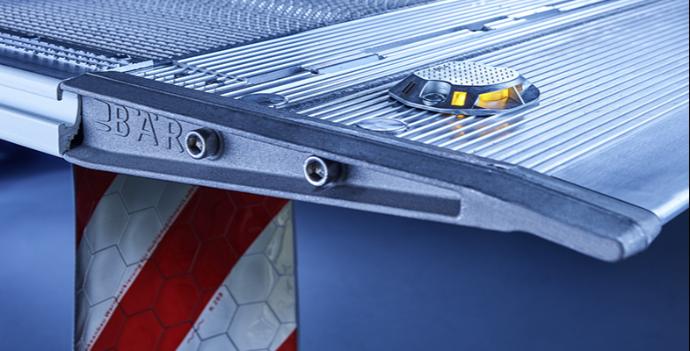 The superstructures are getting higher and higher. With them, the body-closing platforms - and thus also the load moment. In this context BÄR presents its solution: a new platform construction, flat and with aluminium support beam. Above all, the intelligently designed, transversely laid 40 mm profiles ensure lasting roll-over resistance. The design is typical BÄR for many years.