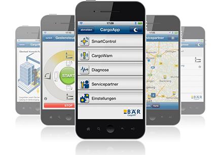 The Bär CargoApp accesses the Cargolift via Bluetooth and enables remote control via smartphone "Bär SmartControl" as well as fault diagnosis of electrical faults.